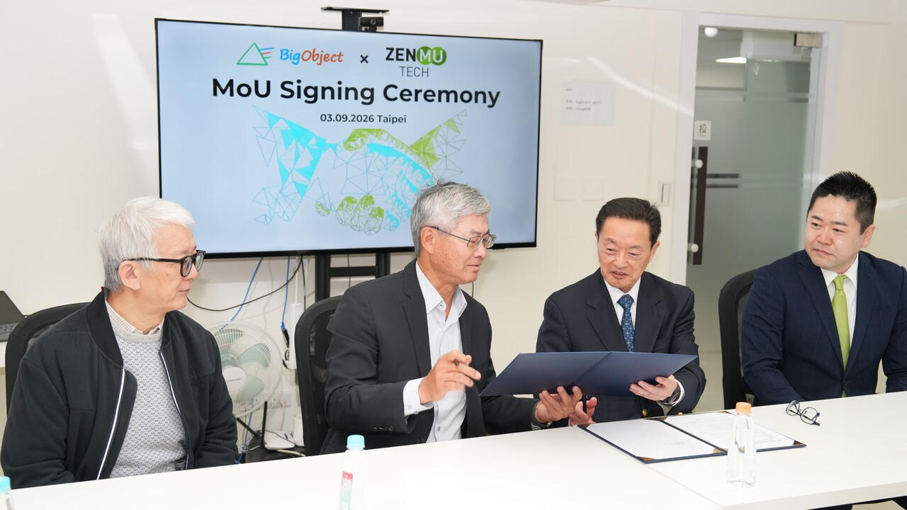 台灣台北與日本東京 — 2026年3月9日 — BigObject Inc. 與 ZenmuTech, Inc. 今日宣布,雙方已簽署合作備忘錄(MOU),將展開策略合作機會之評估。
