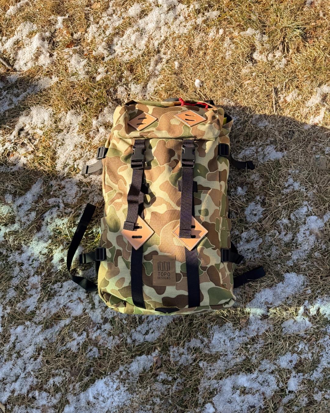 在戶外文化中迷彩不單單是隱身用的圖騰,也是與大自然共處的語言,Topo Designs 本季全新推出 Duck Camo 獵鴨迷彩限量系列,取材自北美經典獵鴨迷彩,將森林、泥地與濕地的色彩層次,轉化為能融入日常生活的包款設計,讓戶外精神走進城市節奏之中。